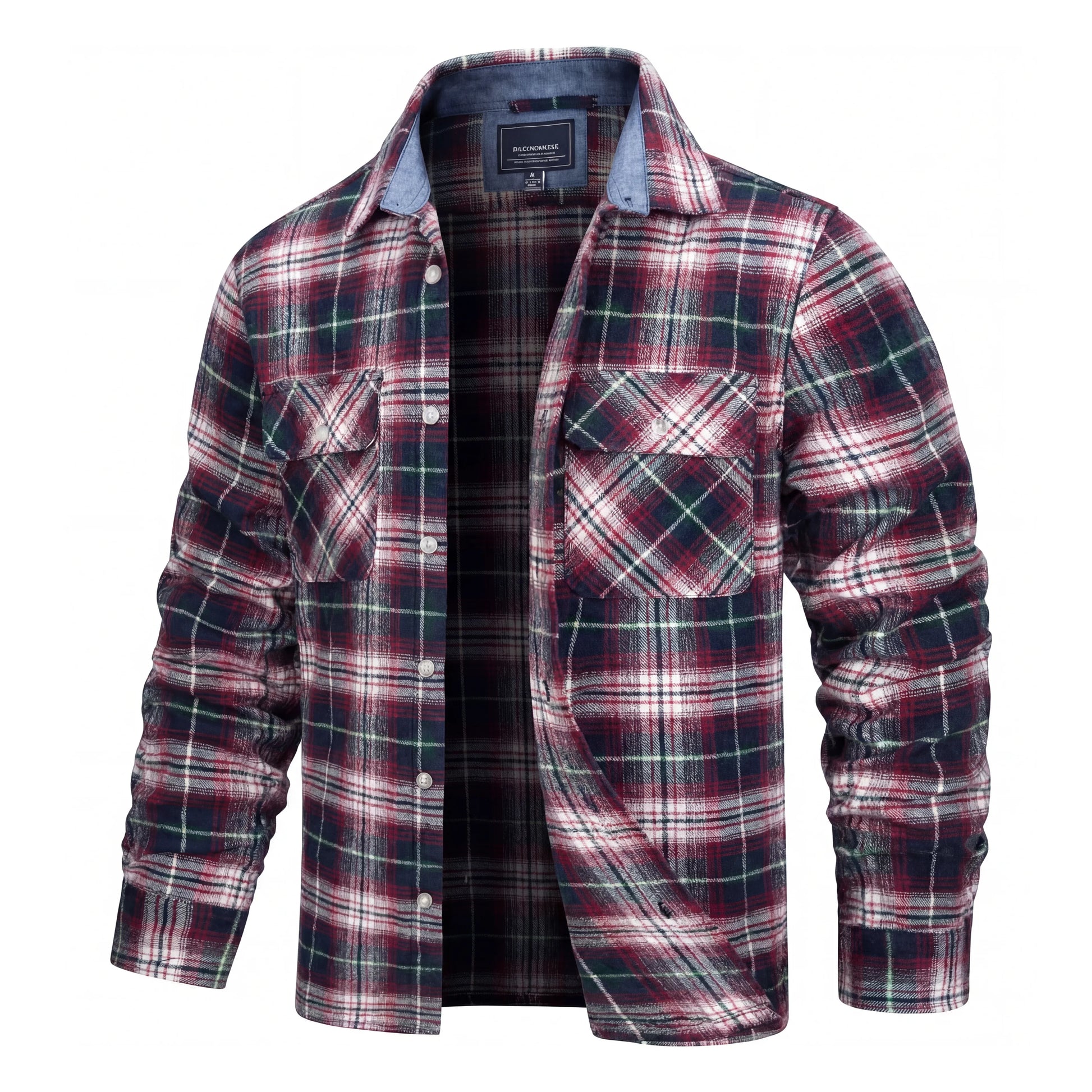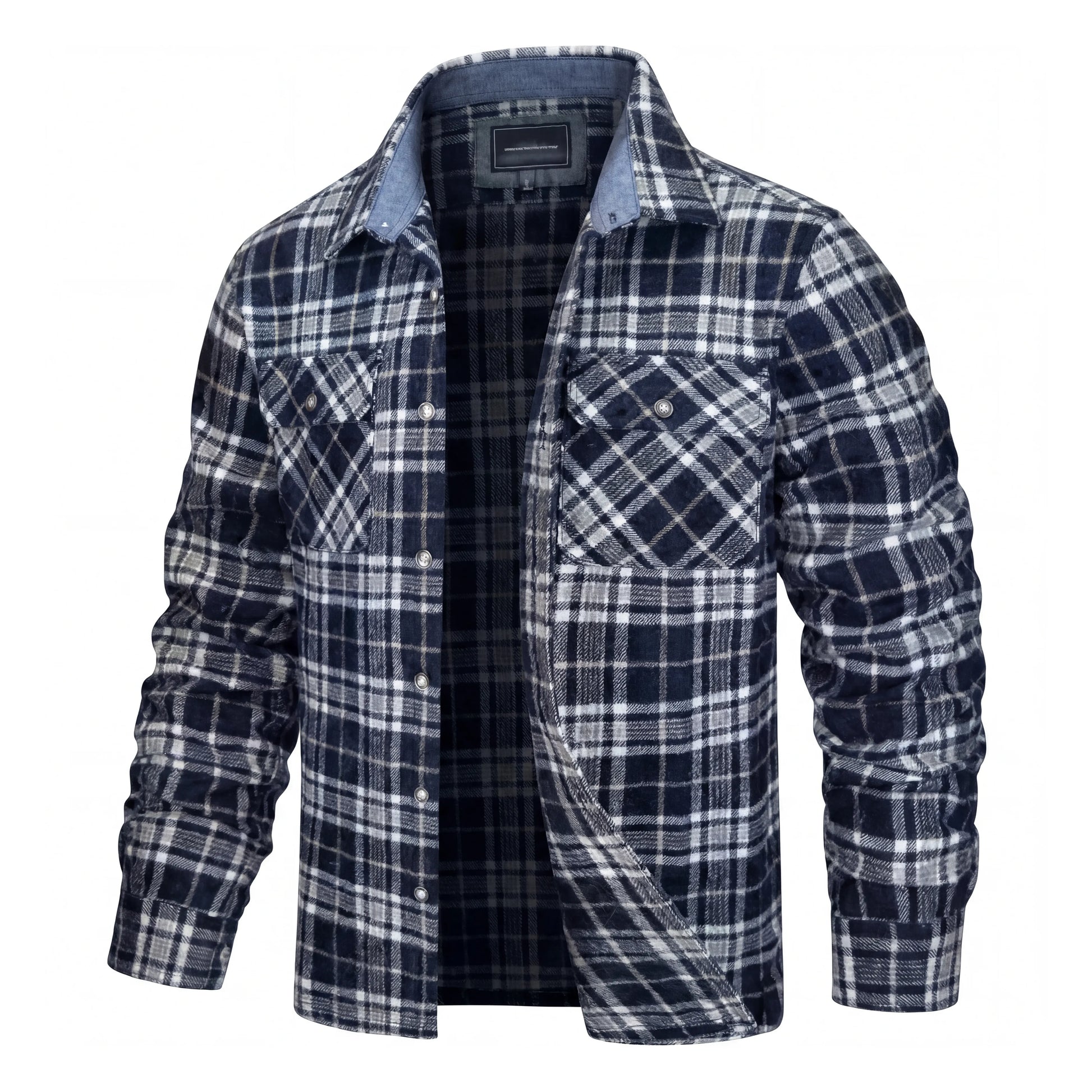 Crafted from a sturdy cotton blend and finished in a bold plaid pattern, this piece embodies authentic workwear character. The structured silhouette maintains a clean, masculine profile, while the soft inner lining provides added insulation without unnecessary bulk.