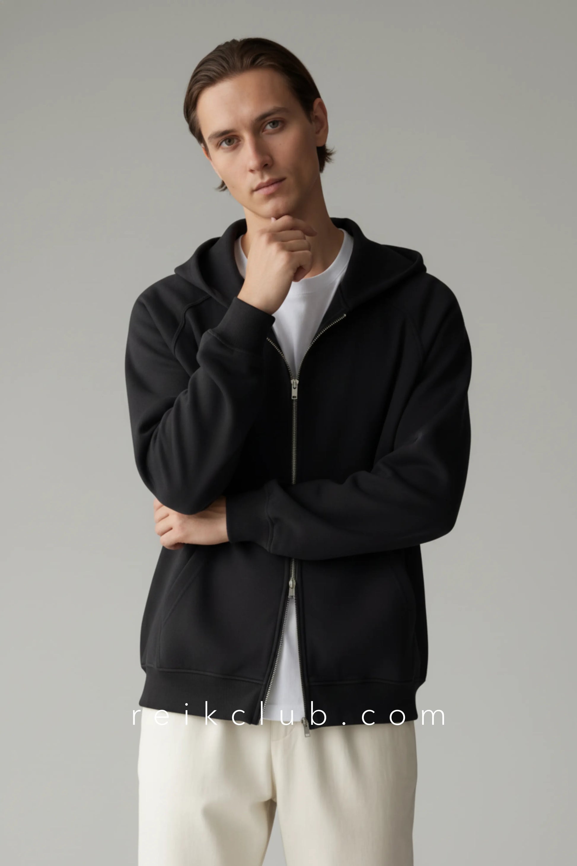 Its minimalist look features a structured hood, durable front zipper, and practical side pockets, making it ideal for urban routines, travel, and leisure moments. The relaxed fit provides a long-lasting comfort feel while maintaining a refined casual style that’s easy to pair with different outfits.